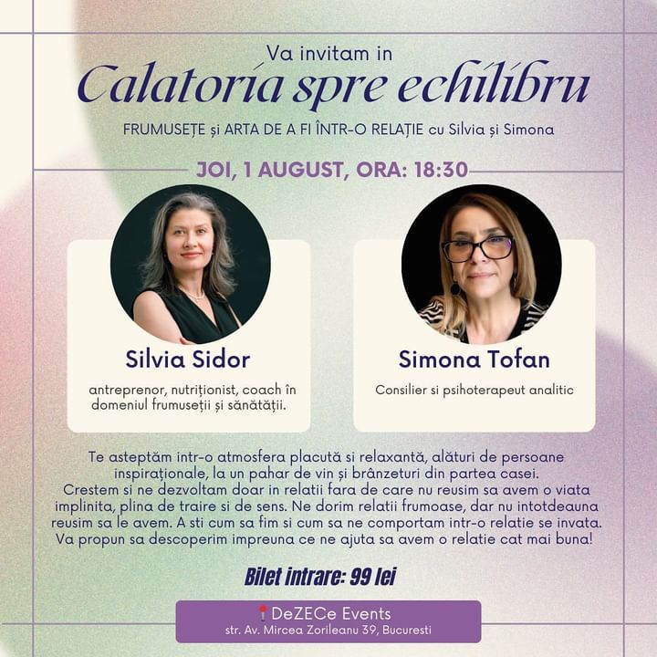 FRUMUSEȚEA și ARTA DE A FI ÎNTR-O RELAȚIE cu Silvia și Simona! Joi, 1 AUGUST, ora 18:30